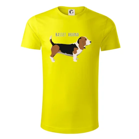 Basset hound pes s nápisom