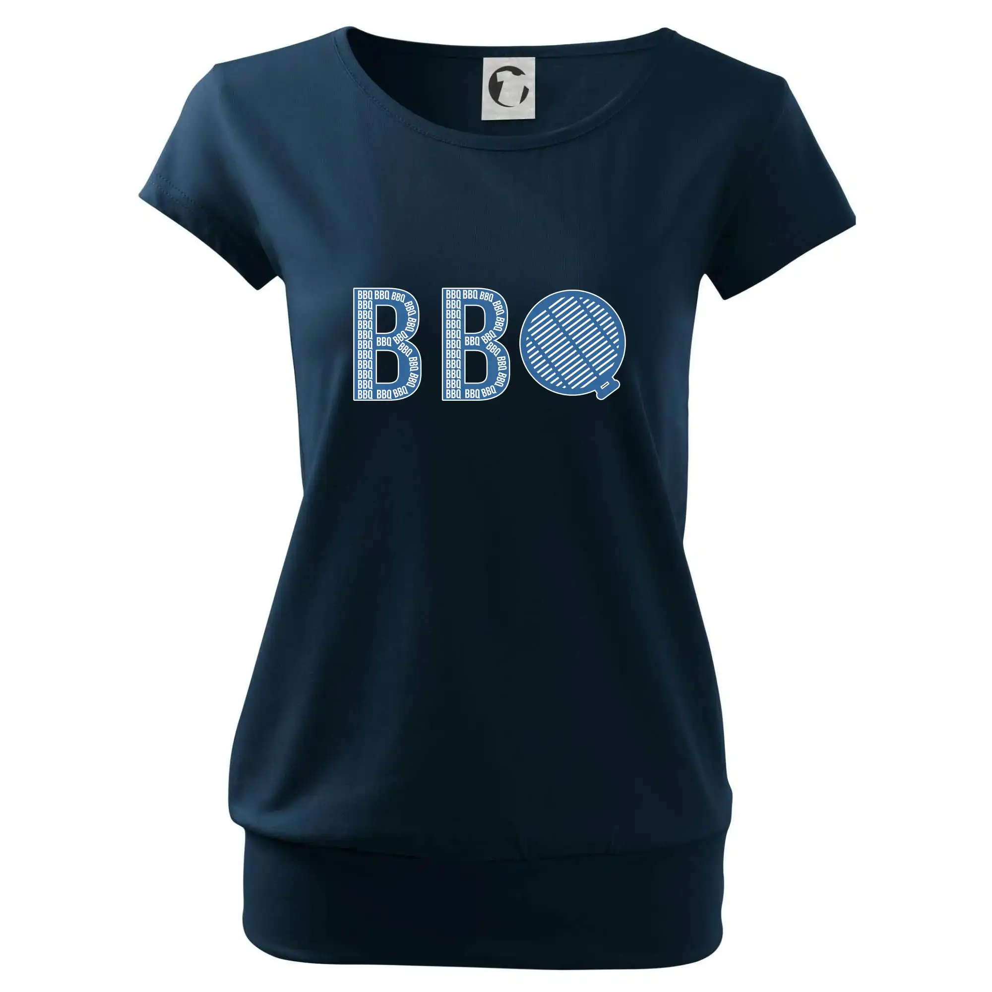 Trendové dámske tričko s veľmi krátkym rukávom, voľnejšieho strihu, v dolnom kraji všité do širokého lemu. Okrúhly priekrčník s úzkym lemom zo zhodného materiálu.