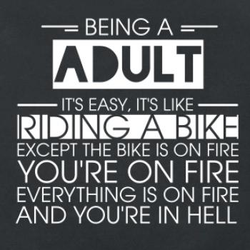 Byť dospelákom je ľahké, je to ako jazda na bicykli. No bicykel je v plameňoch, ty si v plameňoch, všetko je v plameňoch a ty ideš do pekla.