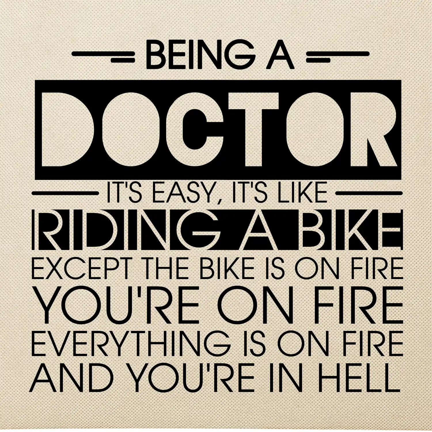 Byť doktorom je ľahké, je to ako jazda na bicykli. No bicykel je v plameňoch, ty si v plameňoch, všetko je v plameňoch a ty ideš do pekla.