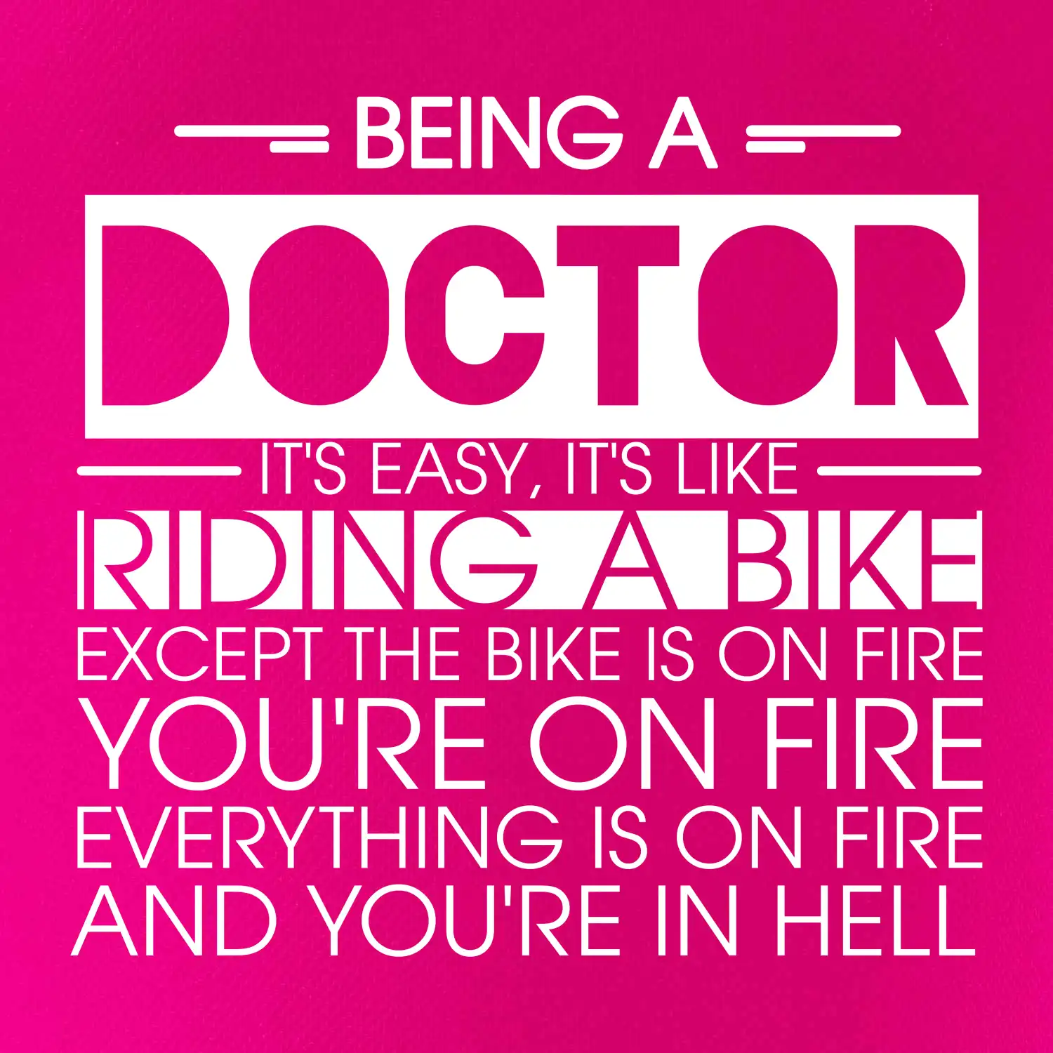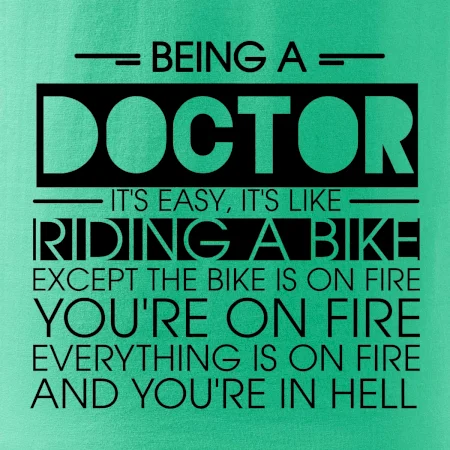 Byť doktorom je ľahké, je to ako jazda na bicykli. No bicykel je v plameňoch, ty si v plameňoch, všetko je v plameňoch a ty ideš do pekla.