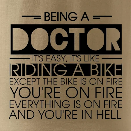 Byť doktorom je ľahké, je to ako jazda na bicykli. No bicykel je v plameňoch, ty si v plameňoch, všetko je v plameňoch a ty ideš do pekla.