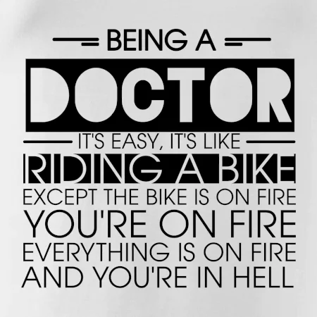 Byť doktorom je ľahké, je to ako jazda na bicykli. No bicykel je v plameňoch, ty si v plameňoch, všetko je v plameňoch a ty ideš do pekla.
