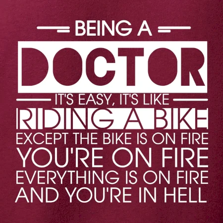 Byť doktorom je ľahké, je to ako jazda na bicykli. No bicykel je v plameňoch, ty si v plameňoch, všetko je v plameňoch a ty ideš do pekla.