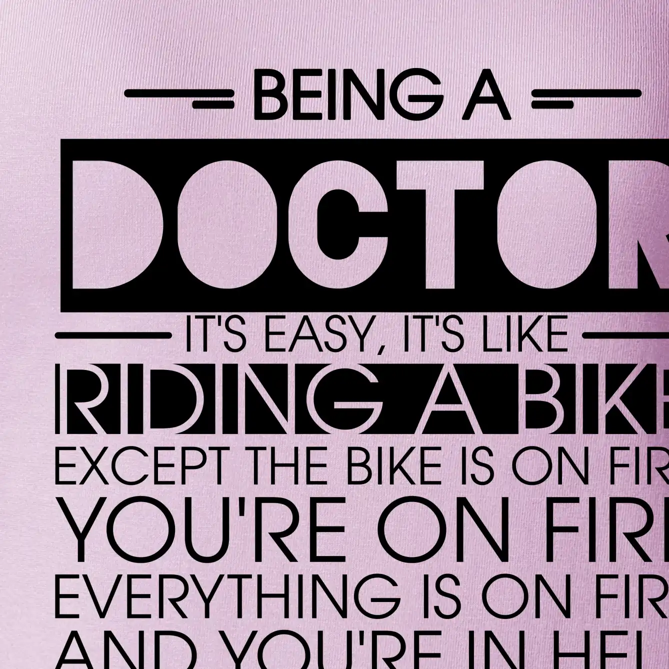 Byť doktorom je ľahké, je to ako jazda na bicykli. No bicykel je v plameňoch, ty si v plameňoch, všetko je v plameňoch a ty ideš do pekla.