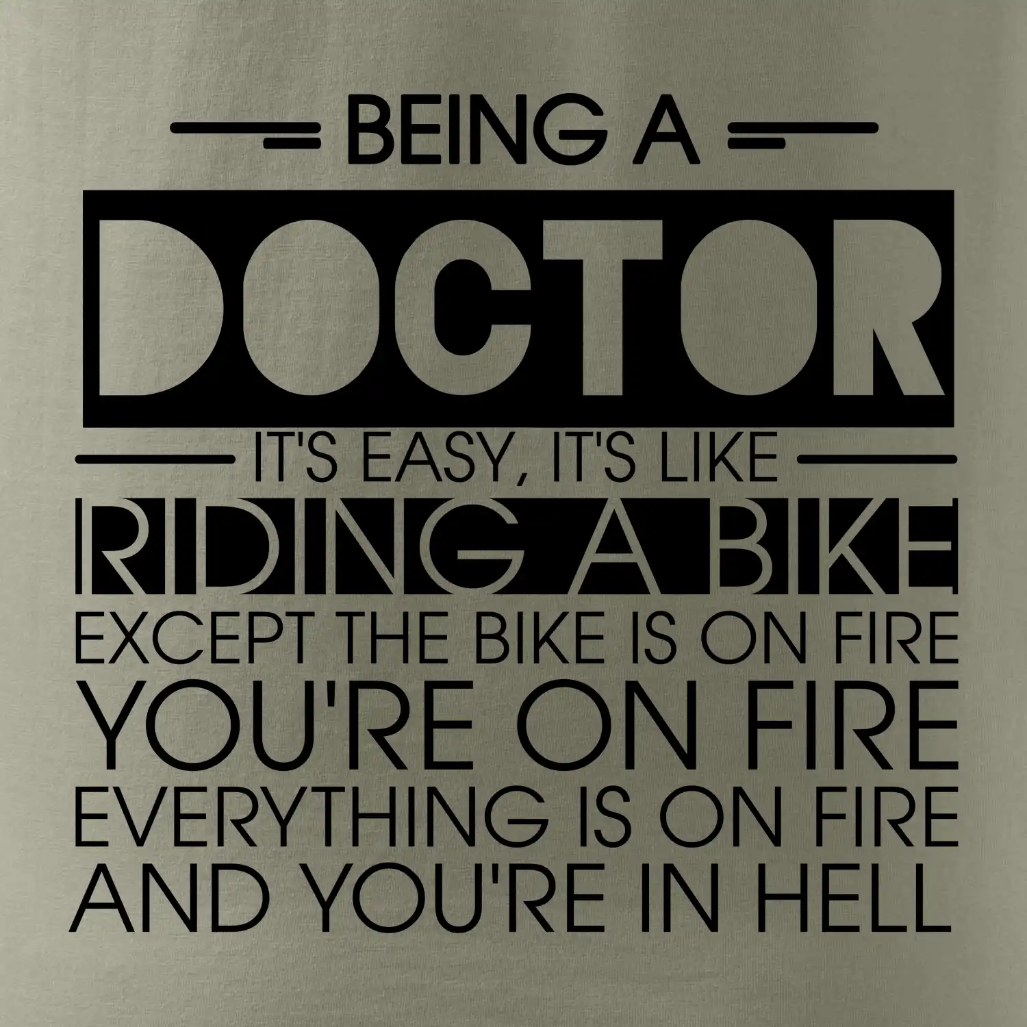 Byť doktorom je ľahké, je to ako jazda na bicykli. No bicykel je v plameňoch, ty si v plameňoch, všetko je v plameňoch a ty ideš do pekla.