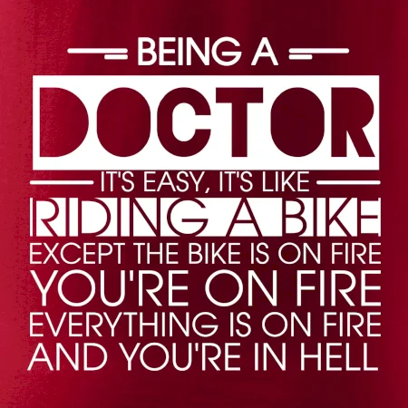 Byť doktorom je ľahké, je to ako jazda na bicykli. No bicykel je v plameňoch, ty si v plameňoch, všetko je v plameňoch a ty ideš do pekla.