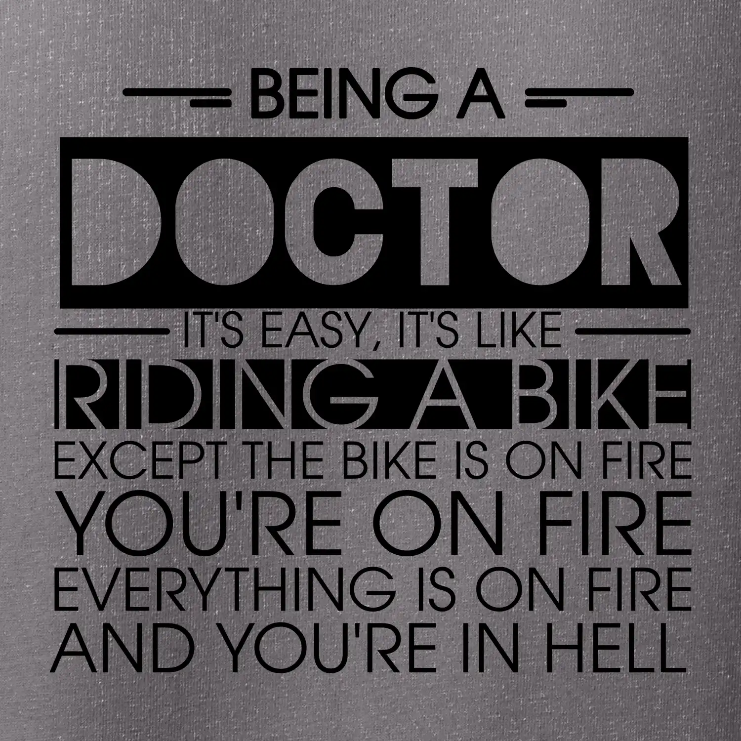 Byť doktorom je ľahké, je to ako jazda na bicykli. No bicykel je v plameňoch, ty si v plameňoch, všetko je v plameňoch a ty ideš do pekla.