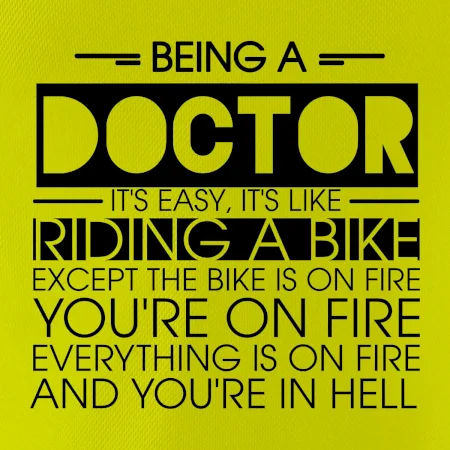 Byť doktorom je ľahké, je to ako jazda na bicykli. No bicykel je v plameňoch, ty si v plameňoch, všetko je v plameňoch a ty ideš do pekla.