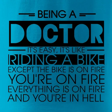 Byť doktorom je ľahké, je to ako jazda na bicykli. No bicykel je v plameňoch, ty si v plameňoch, všetko je v plameňoch a ty ideš do pekla.