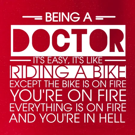 Byť doktorom je ľahké, je to ako jazda na bicykli. No bicykel je v plameňoch, ty si v plameňoch, všetko je v plameňoch a ty ideš do pekla.