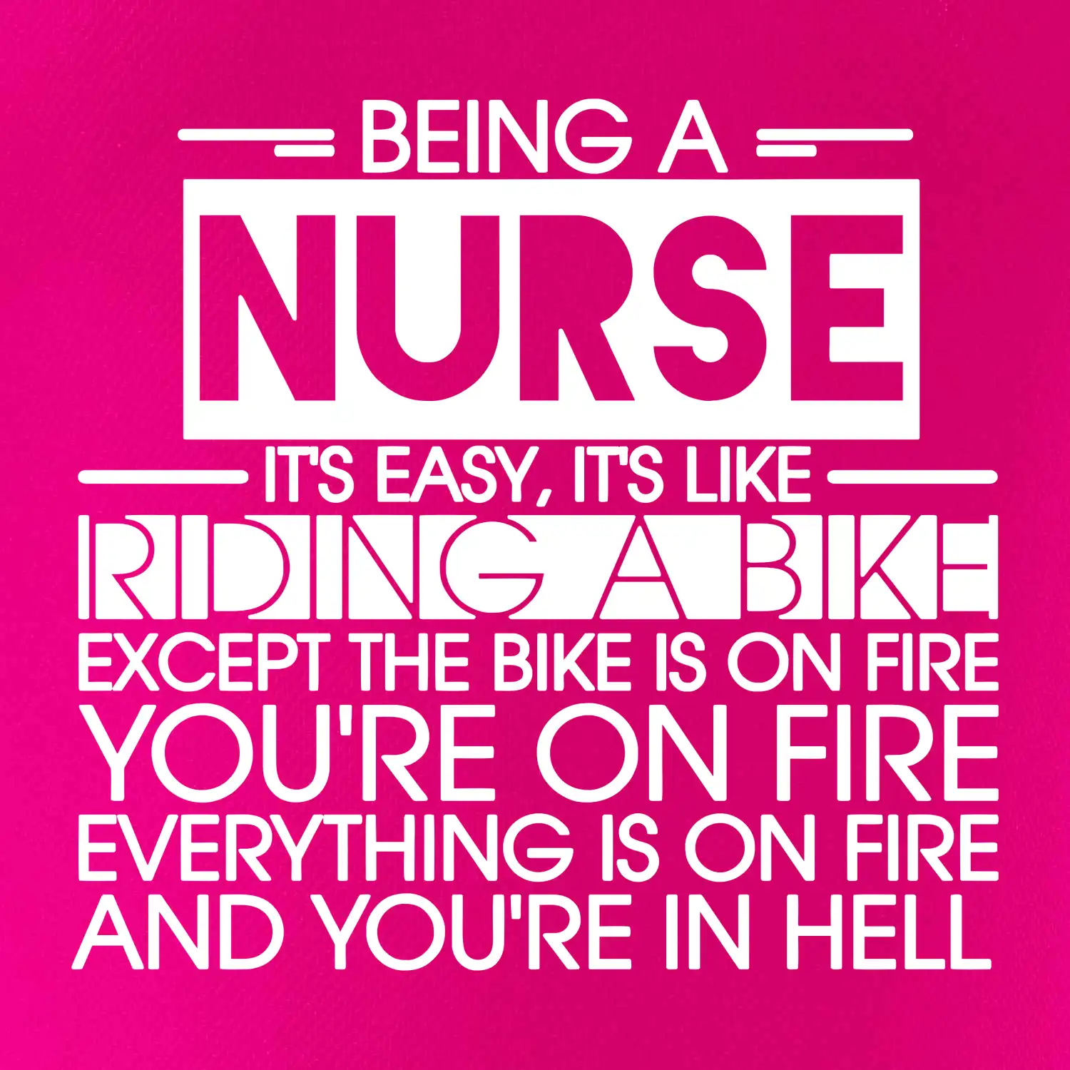 Byť zdravotnou sestričkou je ľahké, je to ako jazda na bicykli. No bicykel je v plameňoch, ty si v plameňoch, všetko je v plameňoch a ty ideš do pekla.
