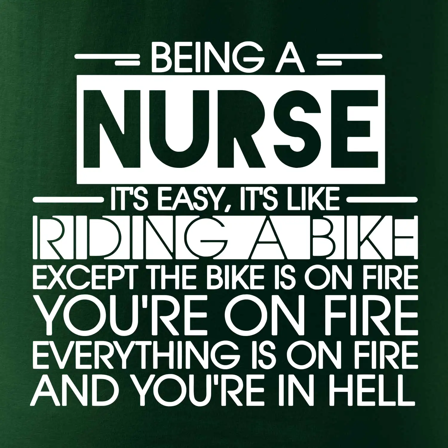 Byť zdravotnou sestričkou je ľahké, je to ako jazda na bicykli. No bicykel je v plameňoch, ty si v plameňoch, všetko je v plameňoch a ty ideš do pekla.