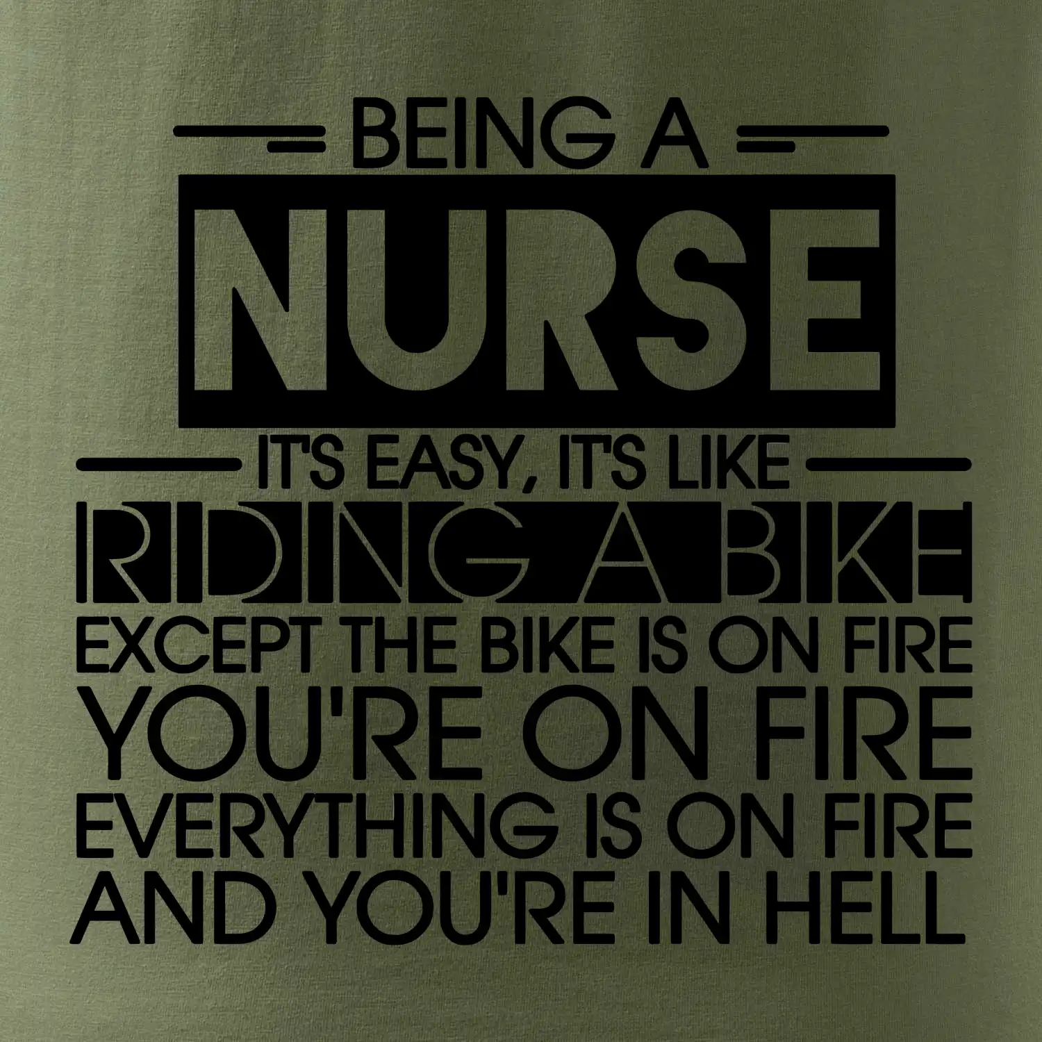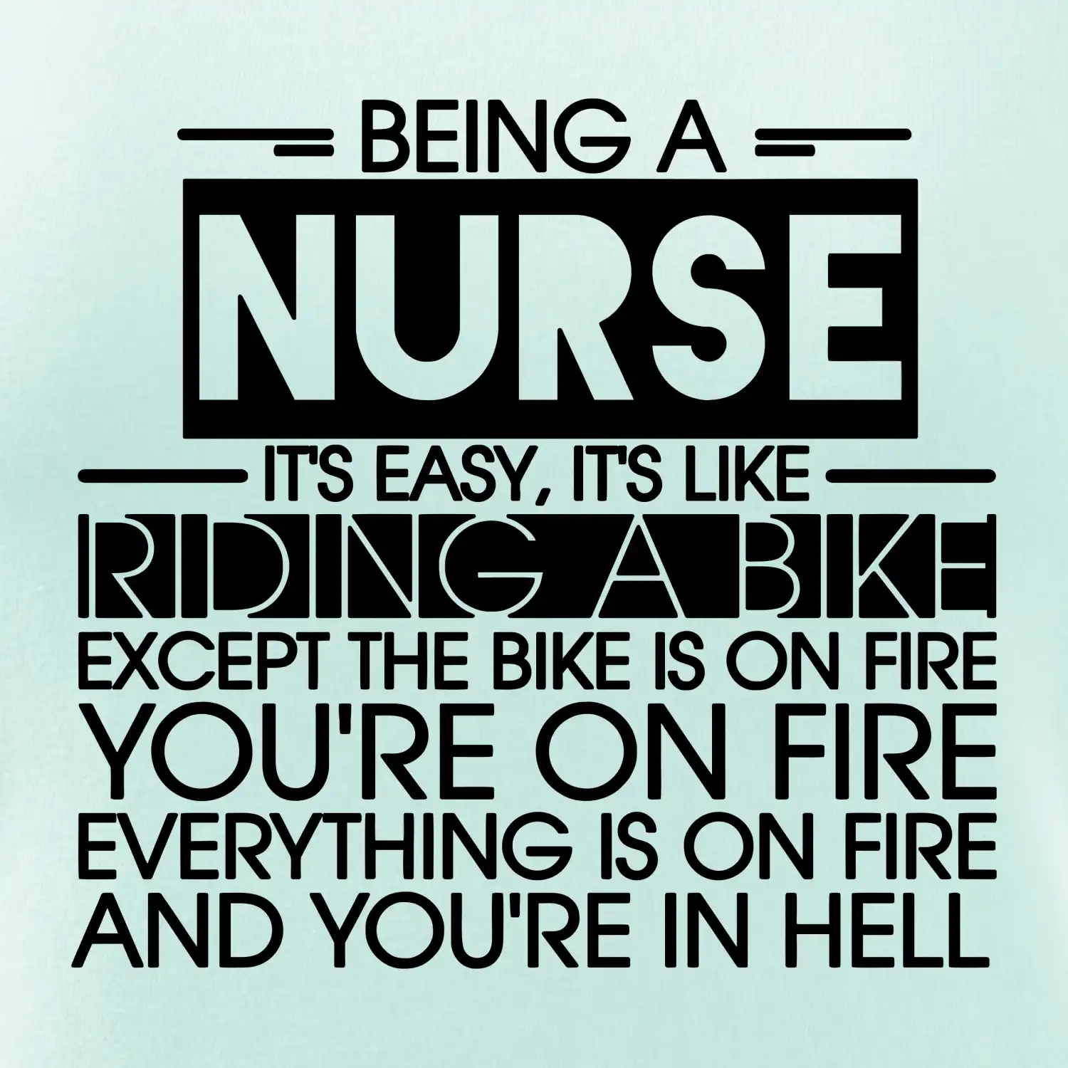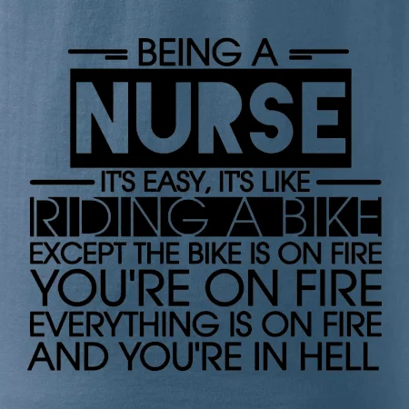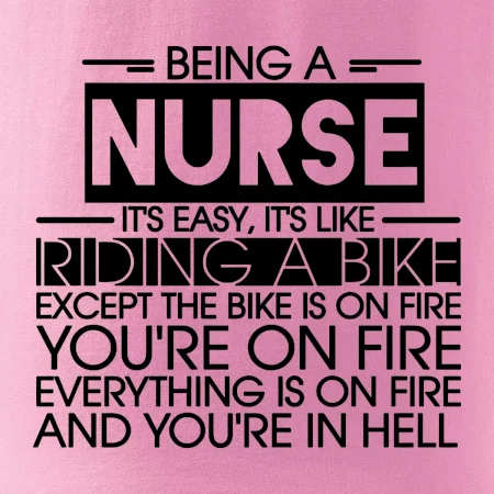 Byť zdravotnou sestričkou je ľahké, je to ako jazda na bicykli. No bicykel je v plameňoch, ty si v plameňoch, všetko je v plameňoch a ty ideš do pekla.