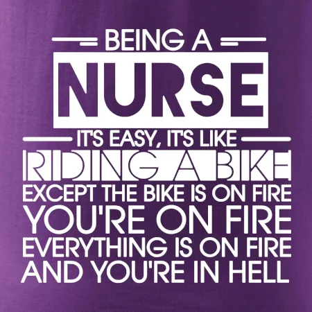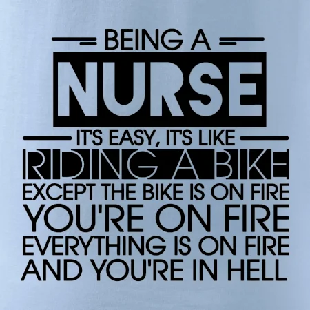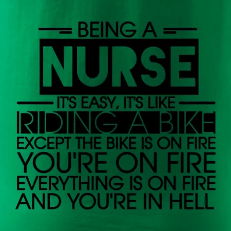 Byť zdravotnou sestričkou je ľahké, je to ako jazda na bicykli. No bicykel je v plameňoch, ty si v plameňoch, všetko je v plameňoch a ty ideš do pekla.