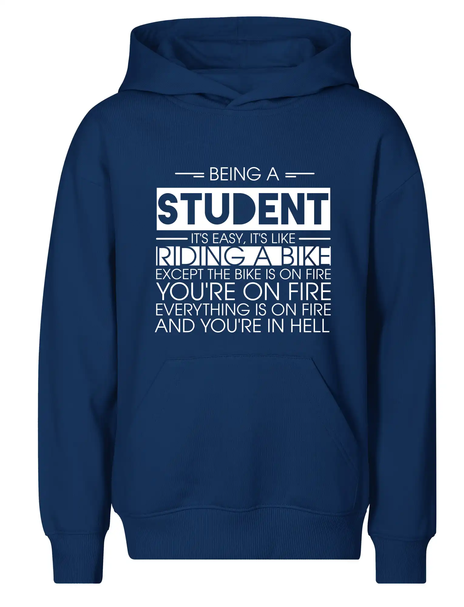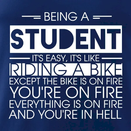 Byť študentom je ľahké, je to ako jazda na bicykli. No bicykel je v plameňoch, ty si v plameňoch, všetko je v plameňoch a ty ideš do pekla.