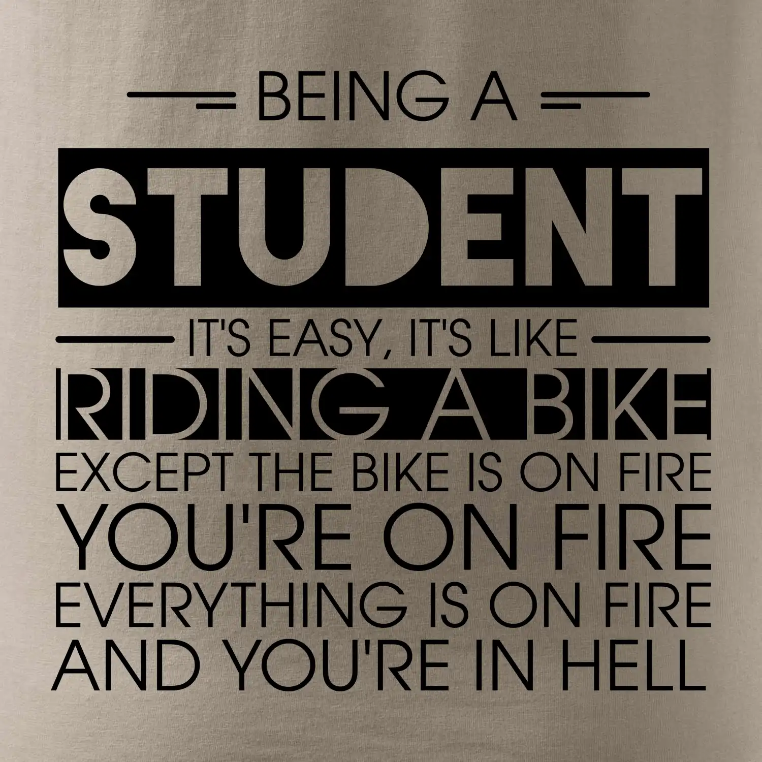 Byť študentom je ľahké, je to ako jazda na bicykli. No bicykel je v plameňoch, ty si v plameňoch, všetko je v plameňoch a ty ideš do pekla.