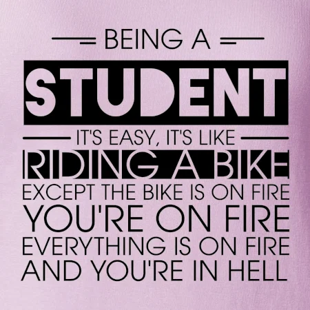 Byť študentom je ľahké, je to ako jazda na bicykli. No bicykel je v plameňoch, ty si v plameňoch, všetko je v plameňoch a ty ideš do pekla.
