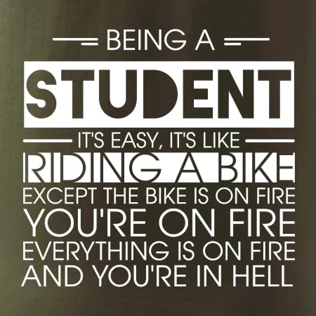 Byť študentom je ľahké, je to ako jazda na bicykli. No bicykel je v plameňoch, ty si v plameňoch, všetko je v plameňoch a ty ideš do pekla.