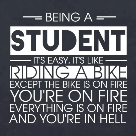 Byť študentom je ľahké, je to ako jazda na bicykli. No bicykel je v plameňoch, ty si v plameňoch, všetko je v plameňoch a ty ideš do pekla.