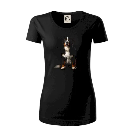 Bernský salašnícky pes sediaci čierna fotka
