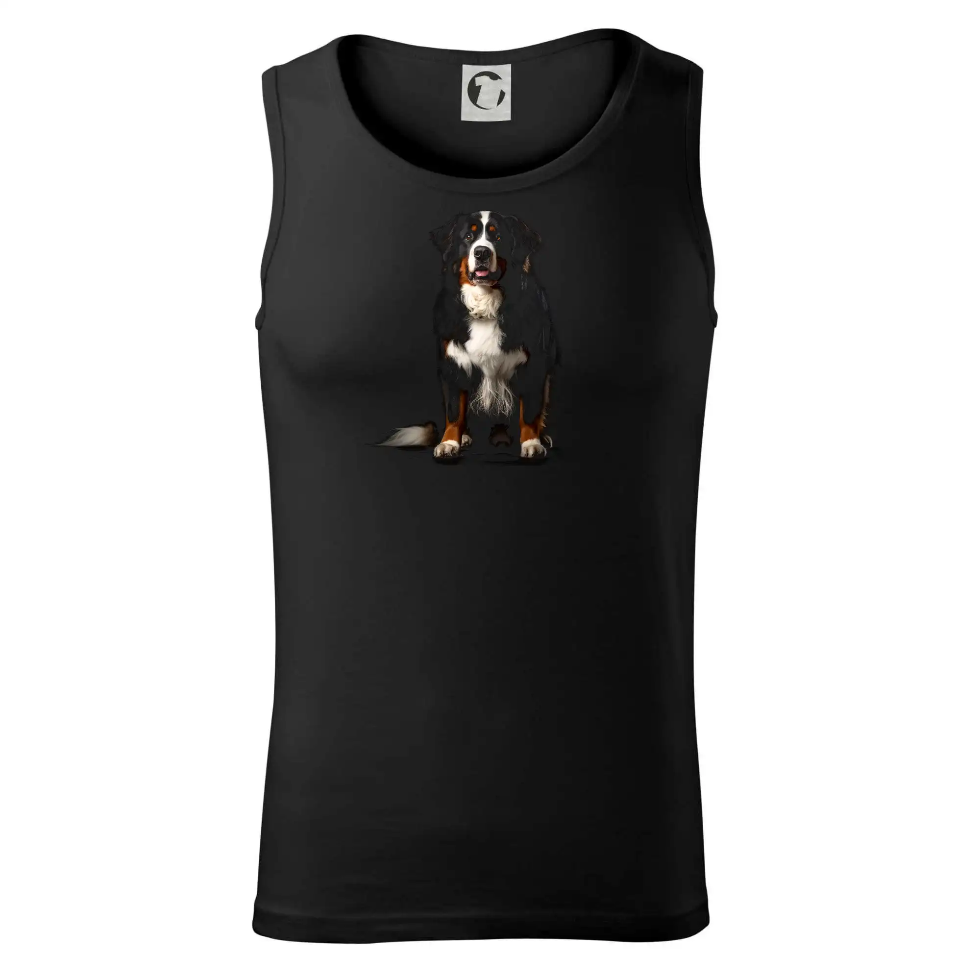 Bernský salašnícky pes sediaci čierna fotka