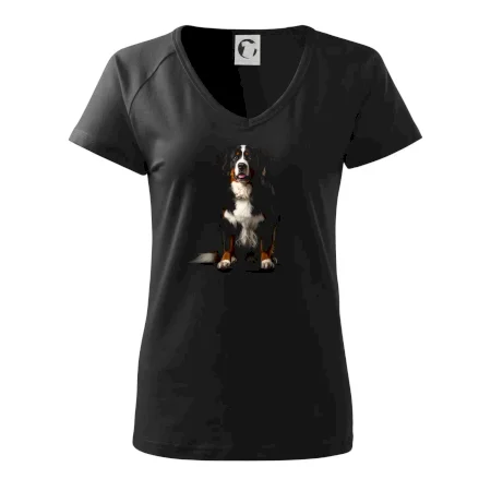 Bernský salašnícky pes sediaci čierna fotka