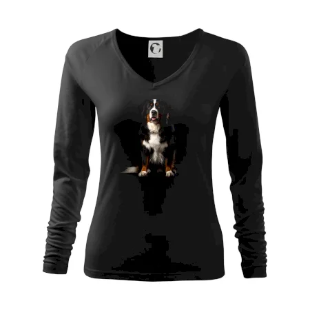 Bernský salašnícky pes sediaci čierna fotka