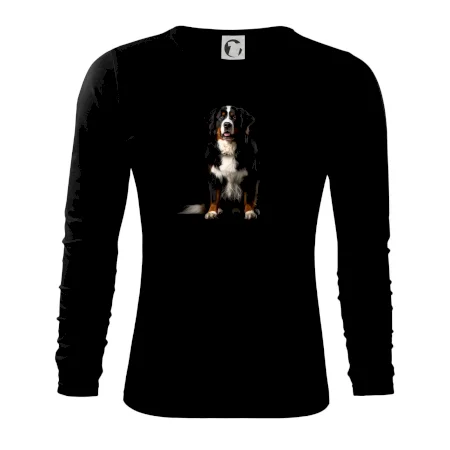 Bernský salašnícky pes sediaci čierna fotka