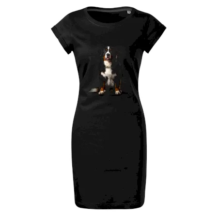 Bernský salašnícky pes sediaci čierna fotka