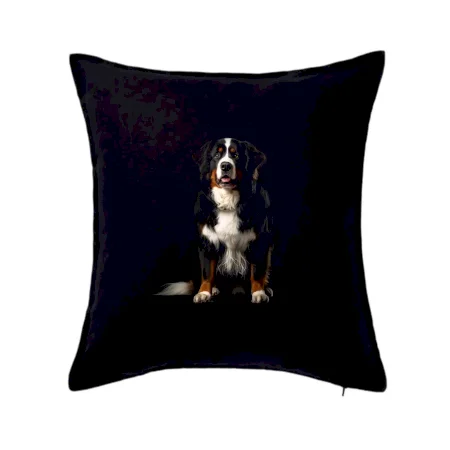 Bernský salašnícky pes sediaci čierna fotka