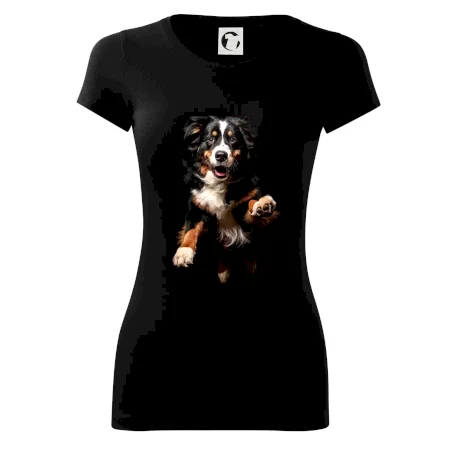 Bernský salašnícky pes skakajúci čierna fotka