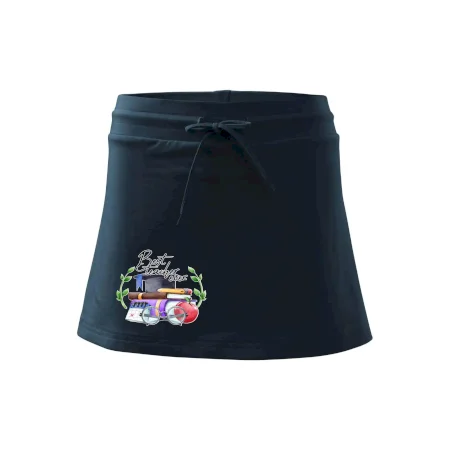 Dámska kraťasová sukňa MALFINI Two in One 604 je perfektnou kombináciou sukne a šortiek, ideálna na šport, voľný čas alebo ležérne nosenie. Vďaka prídavku elastanu si sukňa zachováva tvar a ponúka pohodlie pri pohybe. Krátky strih do tvaru „A“ a široký elastický pás so sťahovacou šnúrkou zabezpečujú voľnosť a prispôsobenie.