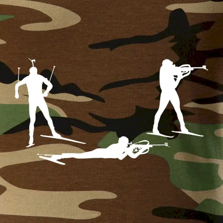 Tričko strednej gramáže vo farbách camouflage. Strih s bočnými švami. Lem priekrčníku z rebrového úpletu s prídavkom 5% elastanu. Vnútorná časť zadného priekrčníka začistená páskou vo farbe camouflage.