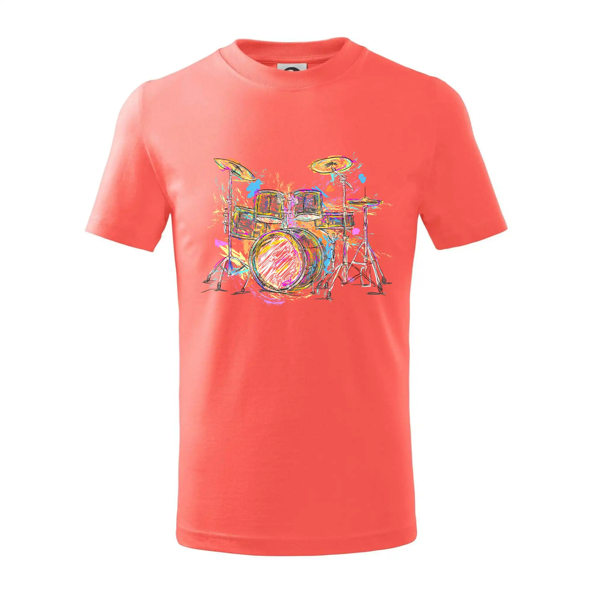 Detské tričko strednej gramáže s bočnými švami. Úzky priekrčník s prídavkom 5% elastanu. Vnútorná časť zadného priekrčníka začistená tkanou páskou. Spevnený ramenný šev.