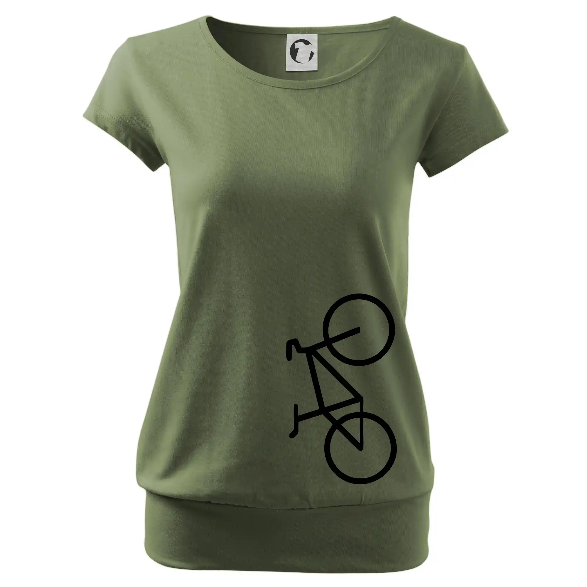 Trendové dámske tričko s veľmi krátkym rukávom, voľnejšieho strihu, v dolnom kraji všité do širokého lemu. Okrúhly priekrčník s úzkym lemom zo zhodného materiálu.