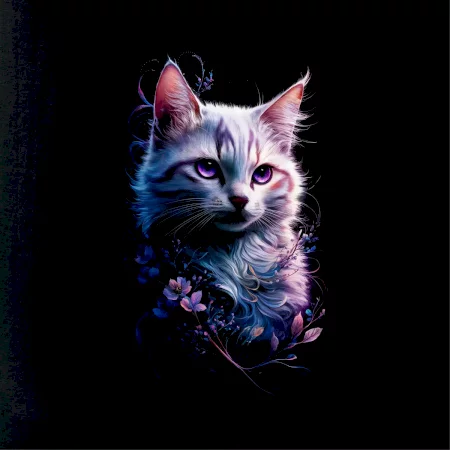 Biela mačka a kvety