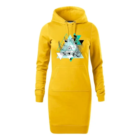 Dámske mikinové šaty MALFINI Snap 419 sú ideálnou voľbou pre ženy, ktoré hľadajú pohodlný a štýlový kúsok na voľný čas alebo každodenné nosenie. Ľahko vypasovaný strih s bočnými švami podčiarkuje ženskú siluetu, zatiaľ čo kapucňa s podšívkou a sťahovacou šnúrkou dodáva ležérny vzhľad. Šaty majú dĺžku nad kolená a sú vybavené našitým vreckom v štýle „klokanky“. Materiál je mäkký a príjemný na dotyk grâce à smesi bavlny a polyesteru s nepočesanou vnútornou stranou.