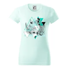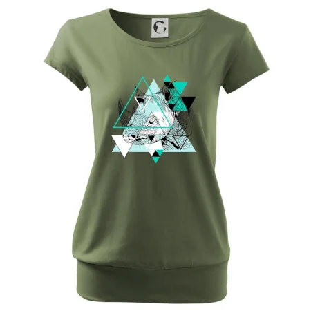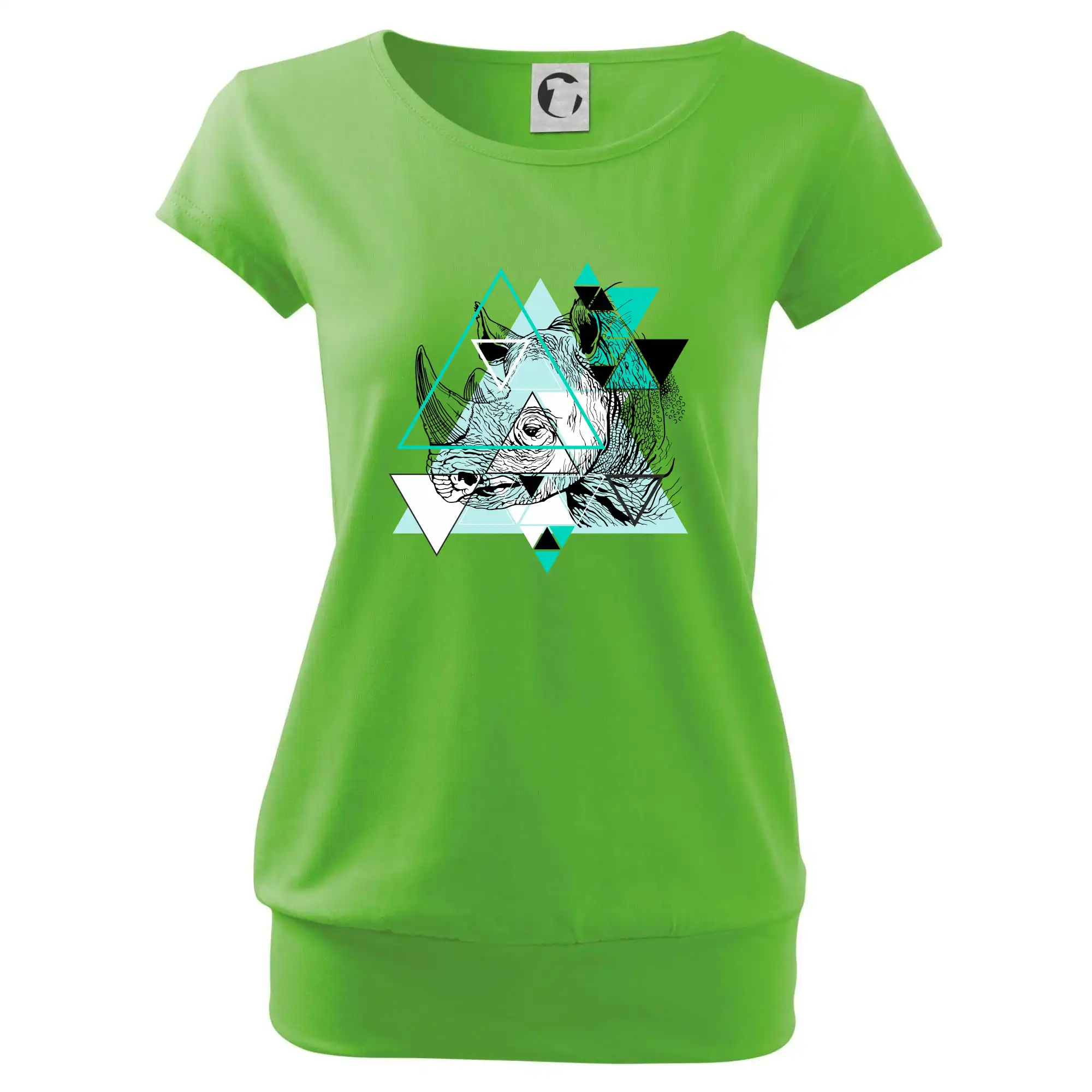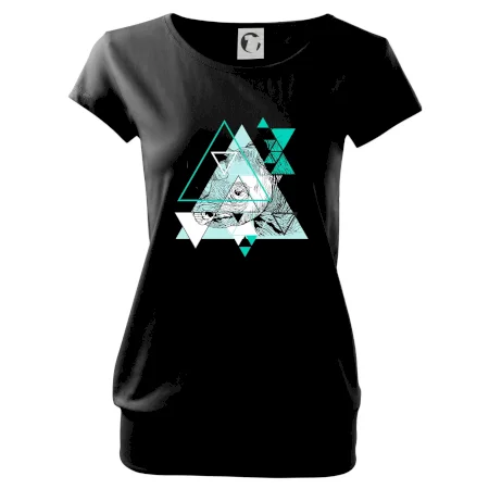 Trendové dámske tričko s veľmi krátkym rukávom, voľnejšieho strihu, v dolnom kraji všité do širokého lemu. Okrúhly priekrčník s úzkym lemom zo zhodného materiálu.