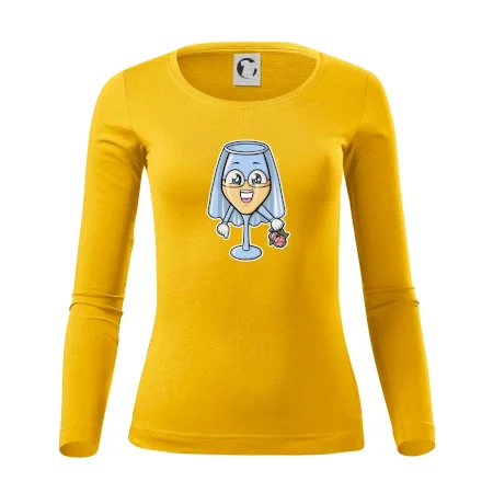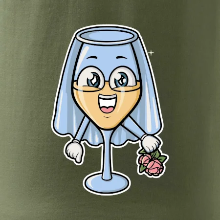 Sklenka vína se závojem pro budoucí nevěstu. Triko na rozlučku se svobodou.