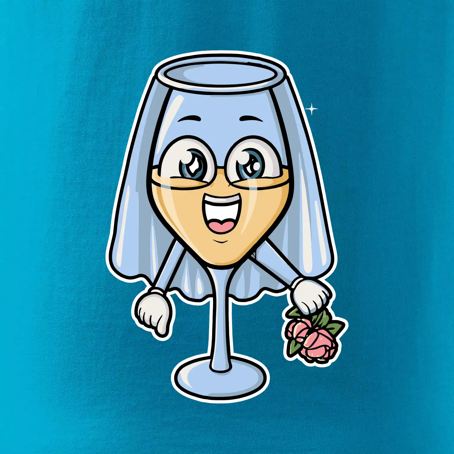 Sklenka vína se závojem pro budoucí nevěstu. Triko na rozlučku se svobodou.