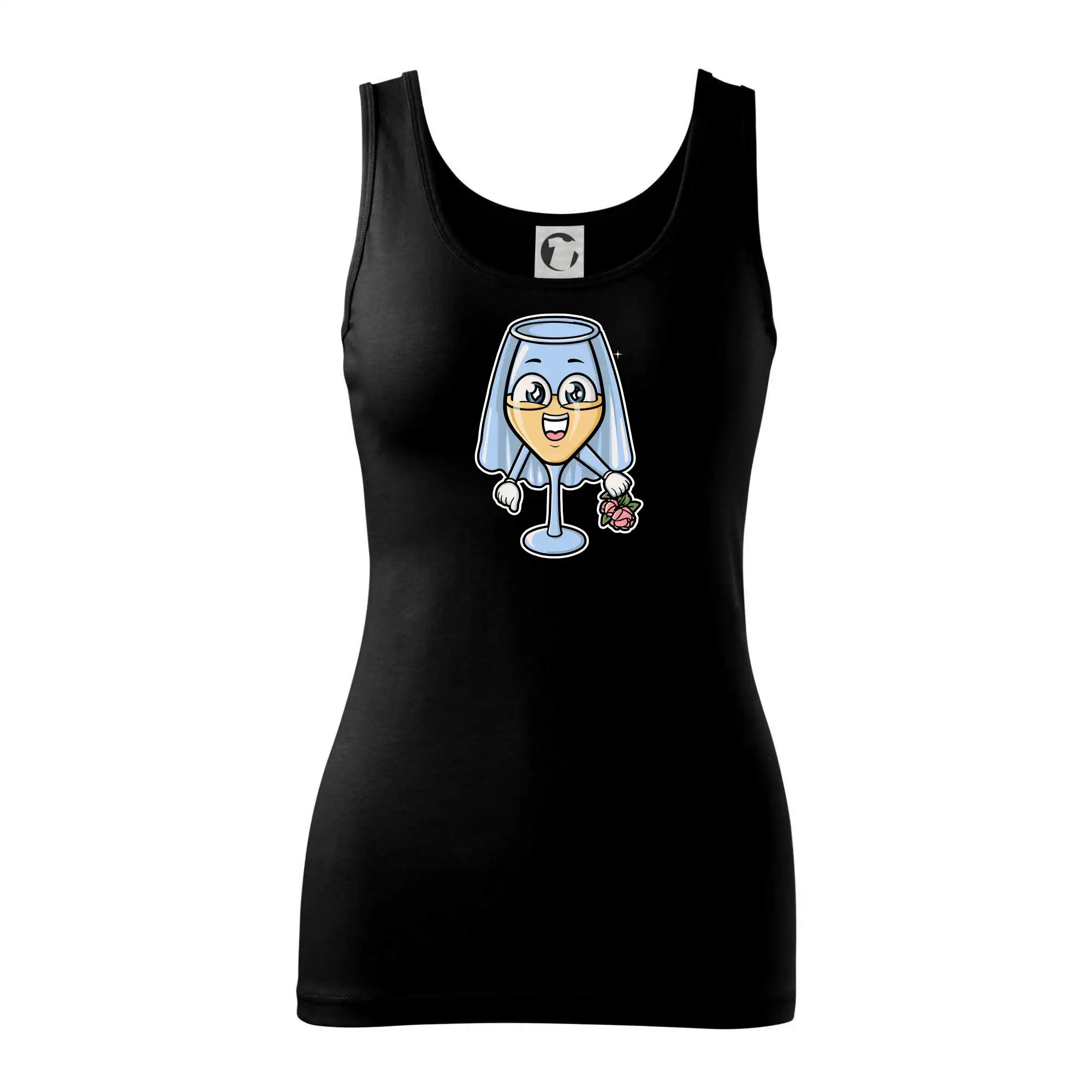 Sklenka vína se závojem pro budoucí nevěstu. Triko na rozlučku se svobodou.