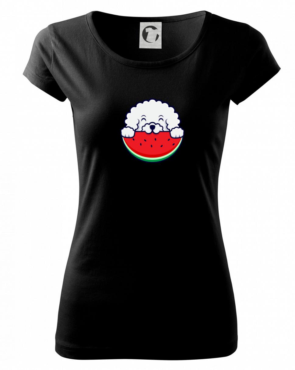 Triko s bišonkem a melounem jako skvělý dárek pro paničku bišonka. Bišonek na triku je esence roztomilosti. Krásný bílý malý pes společenské povahy je jeden z nejroztomilejších, které si můžete u nás pořídit.