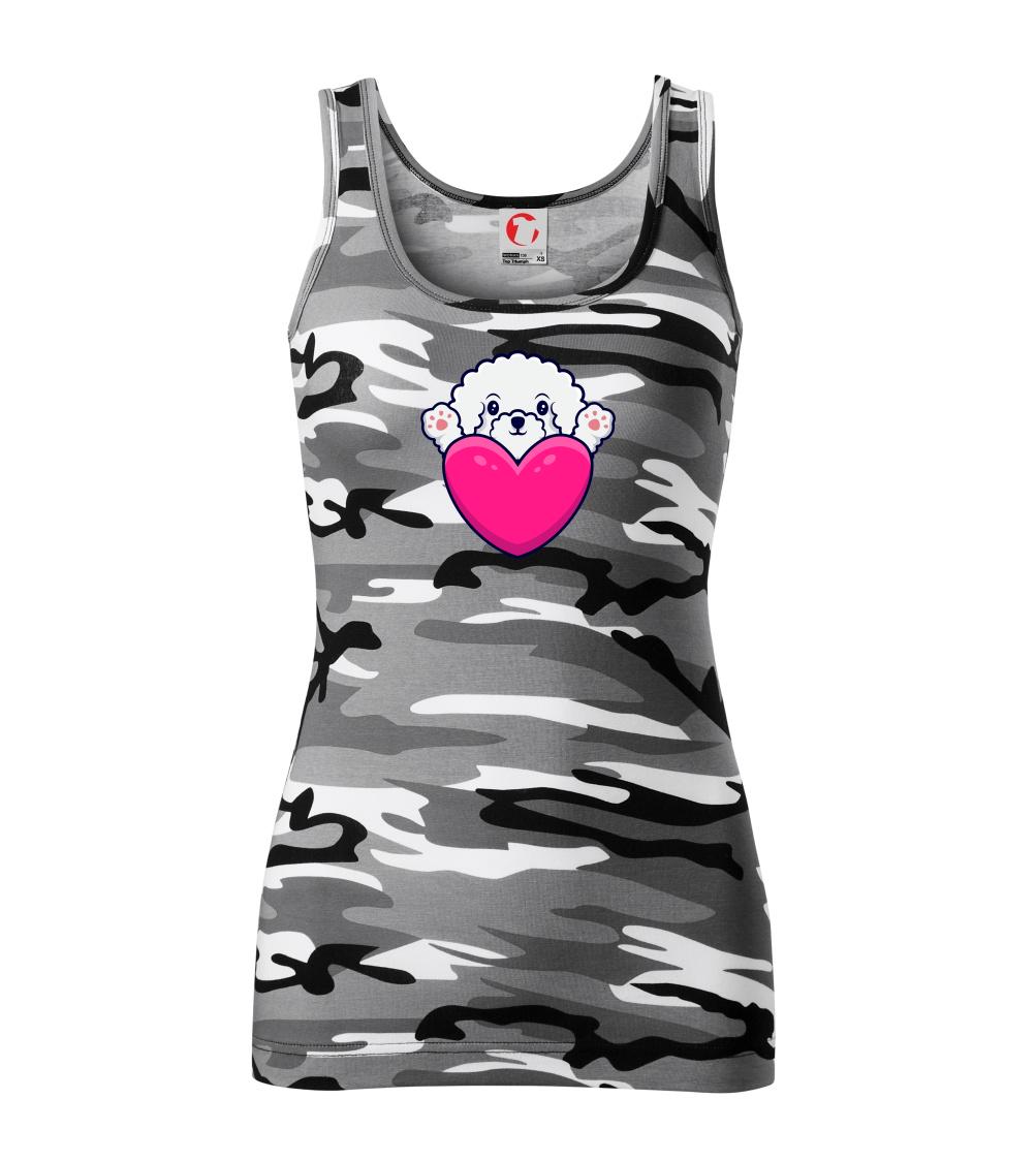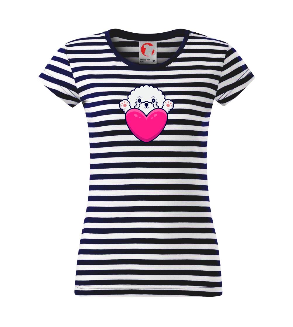 Triko s bišonkem jako skvělý dárek pro paničku bišonka. Bišonek na triku je esence roztomilosti. Krásný bílý malý pes společenské povahy je jeden z nejroztomilejších, které si můžete u nás pořídit.