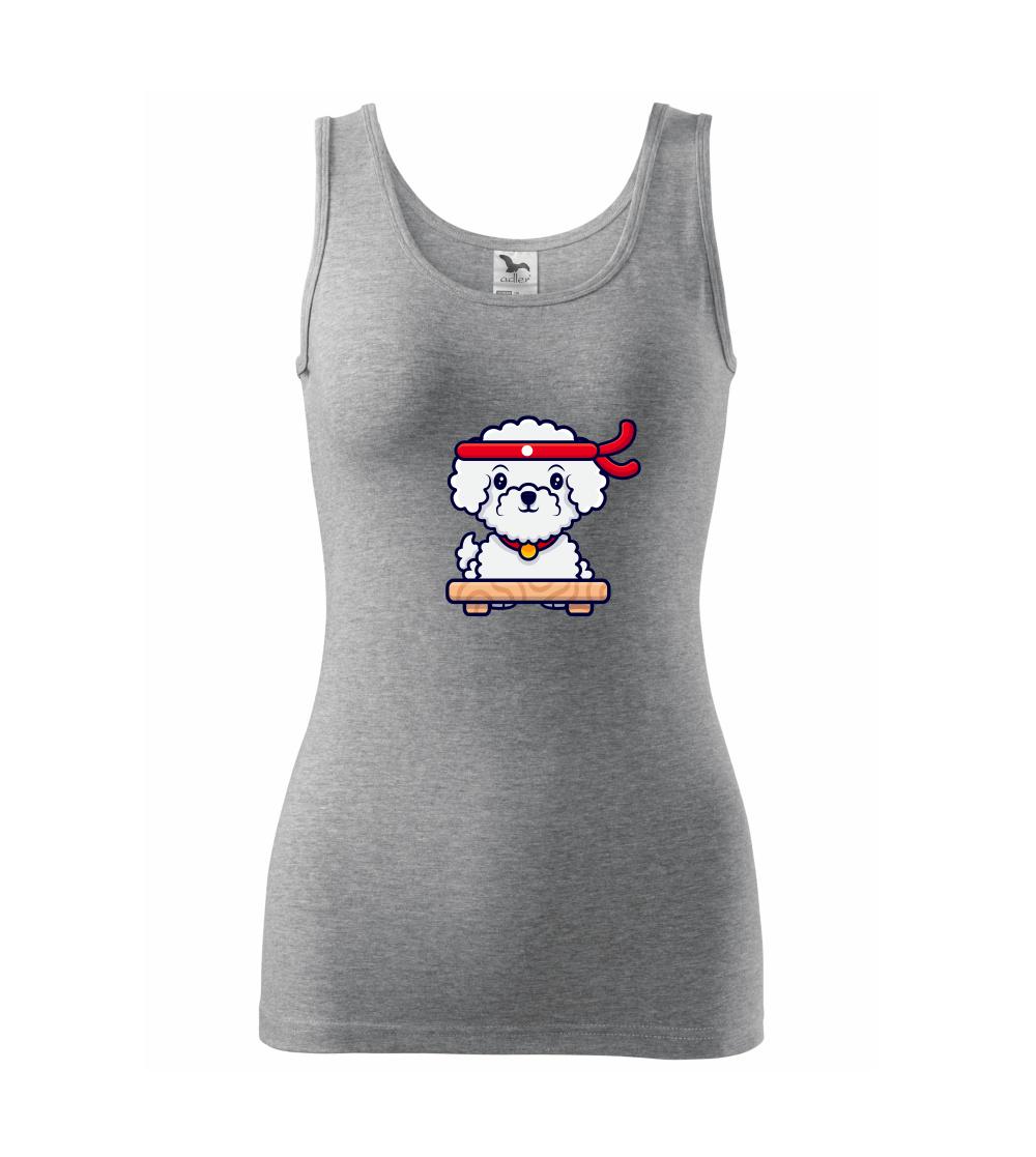 Triko s bišonkem jako skvělý dárek pro paničku bišonka. Bišonek na triku je esence roztomilosti. Krásný bílý malý pes společenské povahy je jeden z nejroztomilejších, které si můžete u nás pořídit.