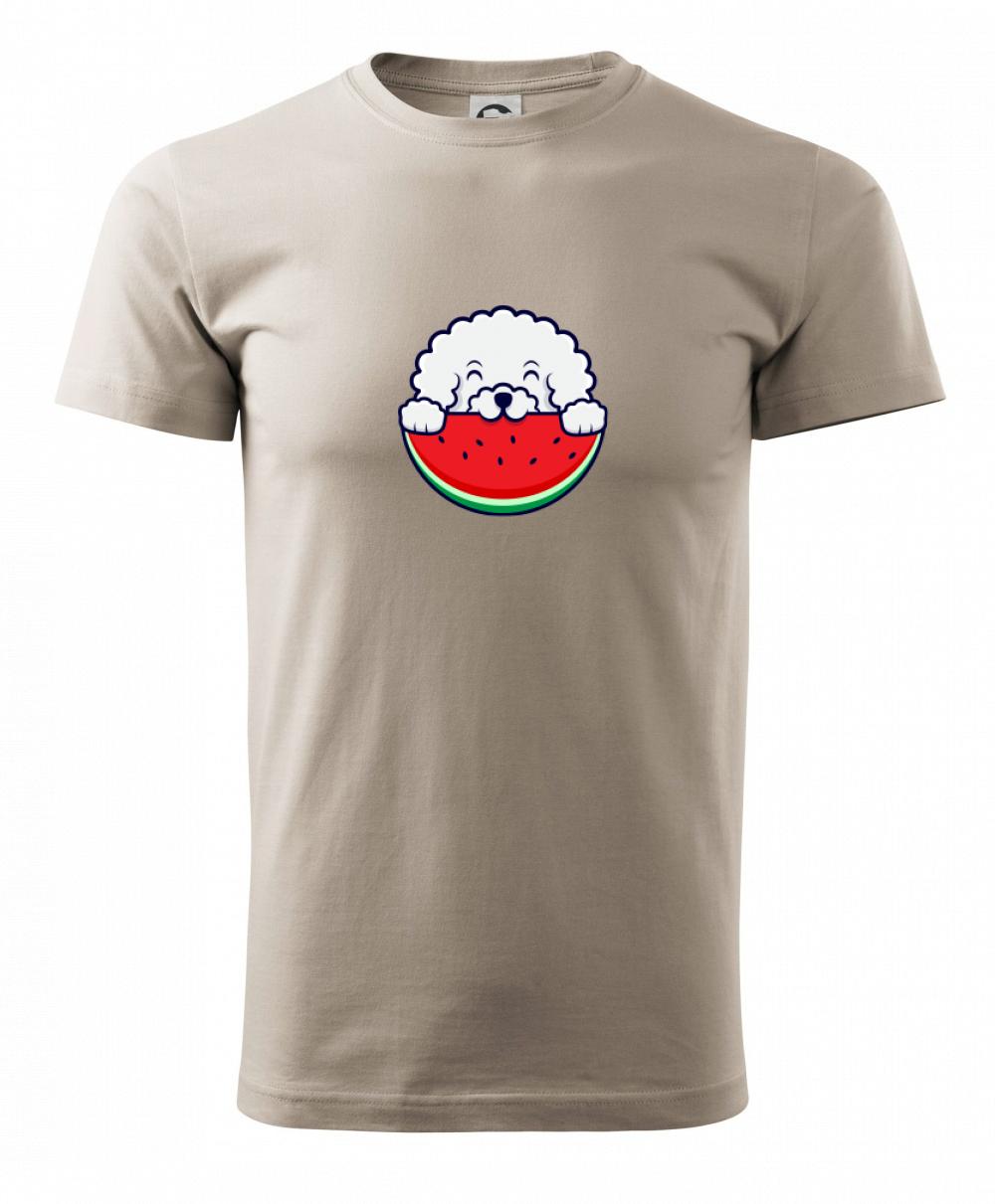 Triko s bišonkem a melounem jako skvělý dárek pro paničku bišonka. Bišonek na triku je esence roztomilosti. Krásný bílý malý pes společenské povahy je jeden z nejroztomilejších, které si můžete u nás pořídit.