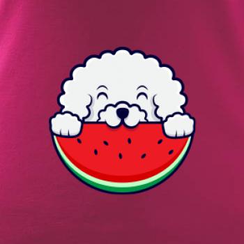 Triko s bišonkem a melounem jako skvělý dárek pro paničku bišonka. Bišonek na triku je esence roztomilosti. Krásný bílý malý pes společenské povahy je jeden z nejroztomilejších, které si můžete u nás pořídit.