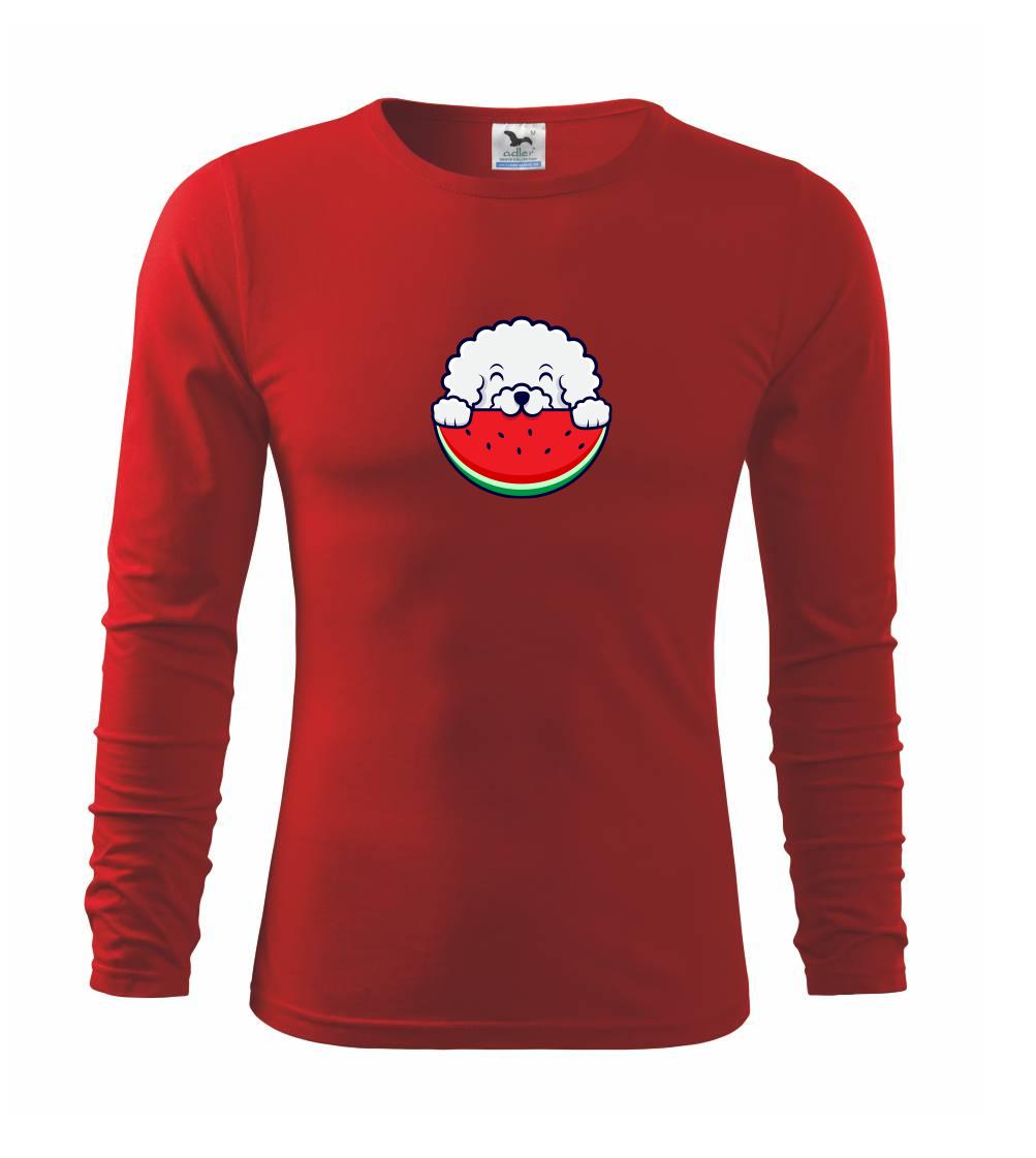 Triko s bišonkem a melounem jako skvělý dárek pro paničku bišonka. Bišonek na triku je esence roztomilosti. Krásný bílý malý pes společenské povahy je jeden z nejroztomilejších, které si můžete u nás pořídit.
