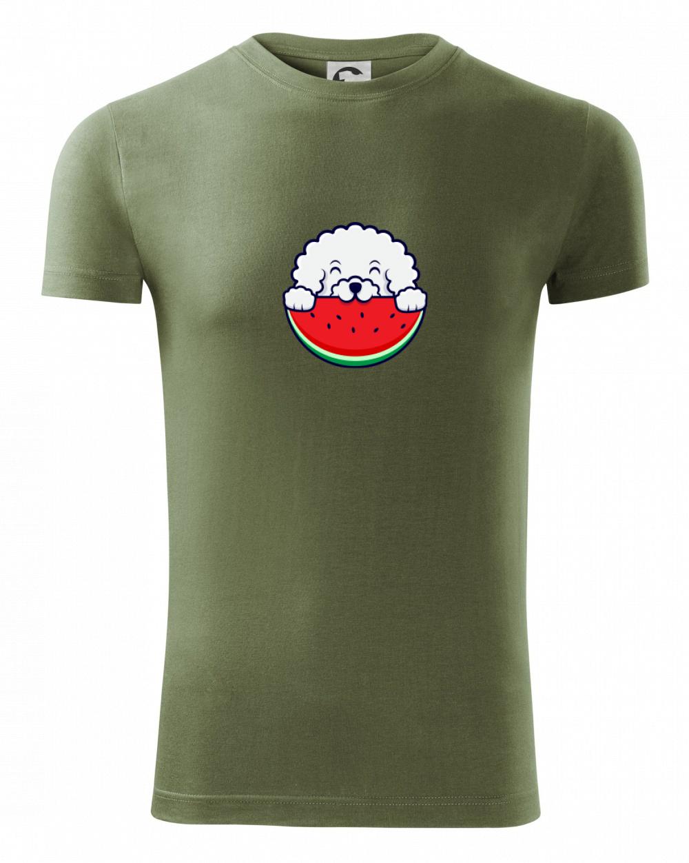 Triko s bišonkem a melounem jako skvělý dárek pro paničku bišonka. Bišonek na triku je esence roztomilosti. Krásný bílý malý pes společenské povahy je jeden z nejroztomilejších, které si můžete u nás pořídit.