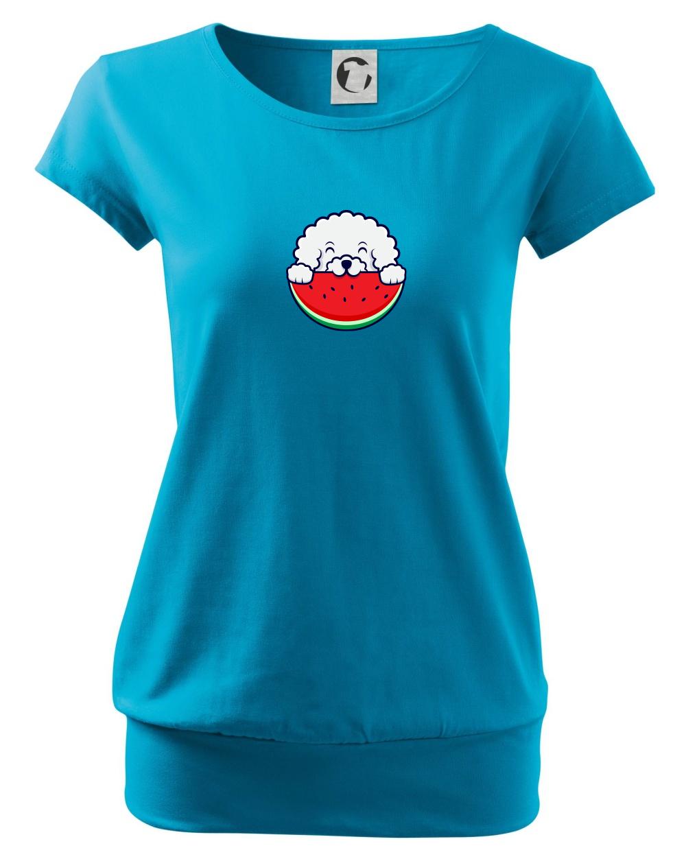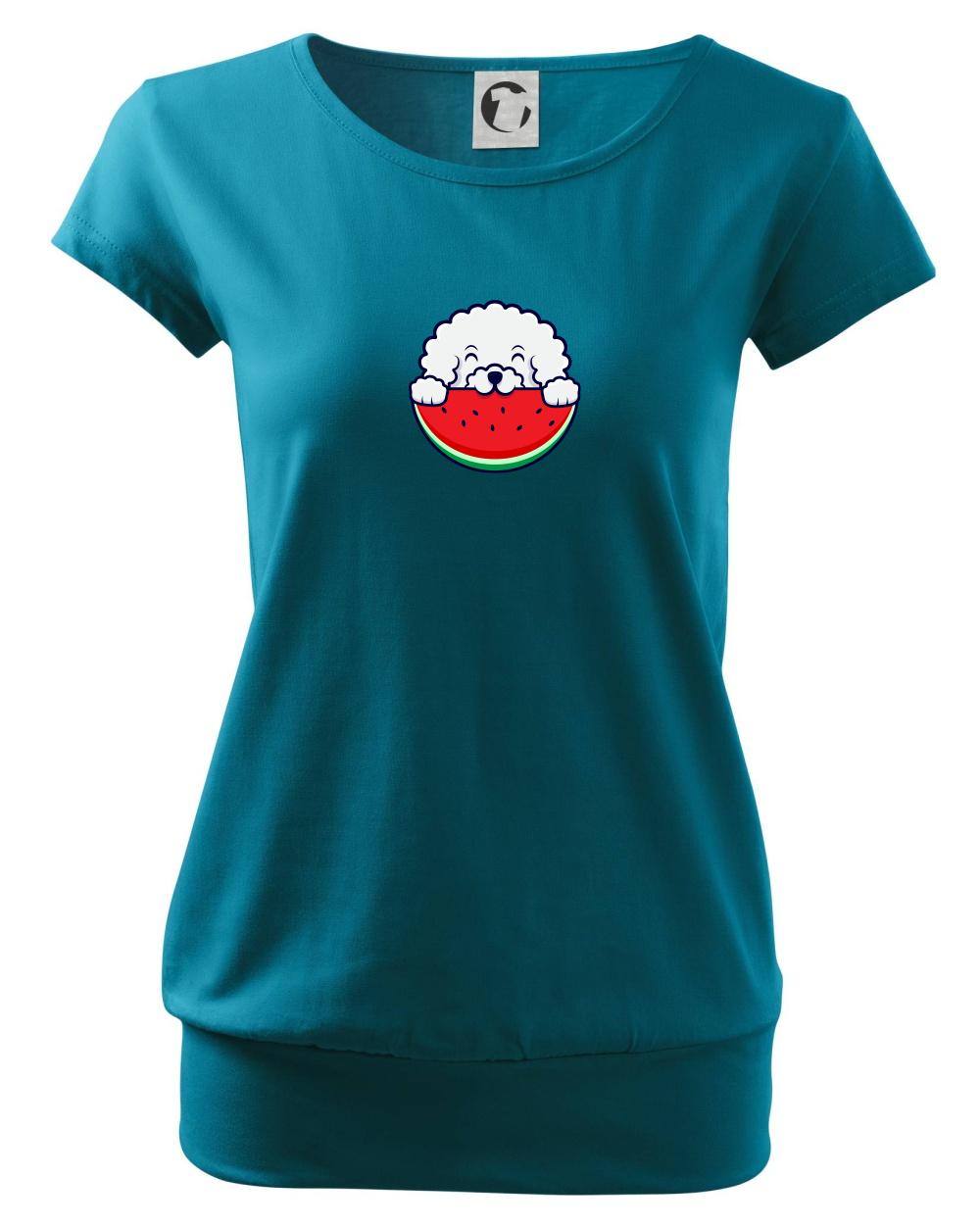 Triko s bišonkem a melounem jako skvělý dárek pro paničku bišonka. Bišonek na triku je esence roztomilosti. Krásný bílý malý pes společenské povahy je jeden z nejroztomilejších, které si můžete u nás pořídit.